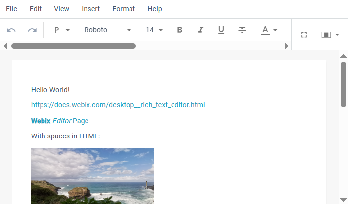 Rich Text Editor предлагает два режима лейаута для работы с контентом: