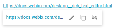 Работать со ссылками и изображениями можно через меню, панель инструментов и непосредственно в текстовом редакторе. Чтобы получить доступ к операциям в текстовом редакторе, нажмите на ссылку или изображение. Появится панель инструментов с вариантами действий: