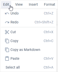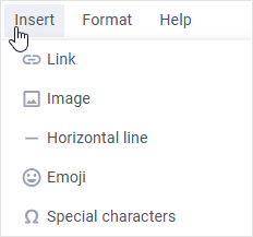 Пункт Insert позволяет добавлять в текст ссылки, изображения, горизонтальные линии, эмодзи и специальные символы.