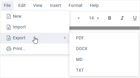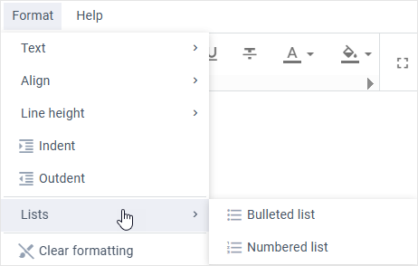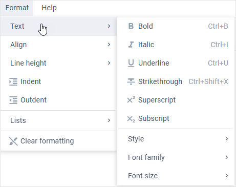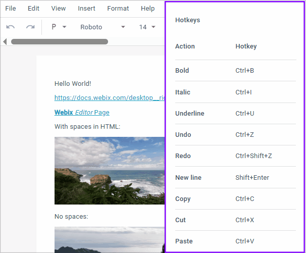 При выборе пункта Help открывается ссылка на документацию Rich Text Editor.