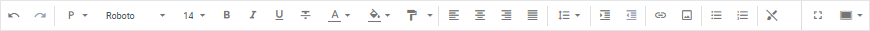 Панель инструментов Rich Text Editor по умолчанию включает следующие кнопки и группы кнопок: