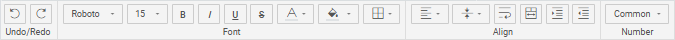 Если вы используете для SpreadSheet пользовательскую тему, необходимо задать дефолтные стили для кнопок Toolbar, чтобы их значения отрисовывались корректно. Это означает, что вам нужно использовать копию ваших стилей из CSS файла при создании темы. Например: