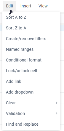 Вы можете добавить выпадающее меню в верхней части SpreadSheet. Это сэкономит пространство тулбара и позволит разместить на нем только самые необходимые кнопки. Чтобы добавить меню, задайте свойству menu значение true.